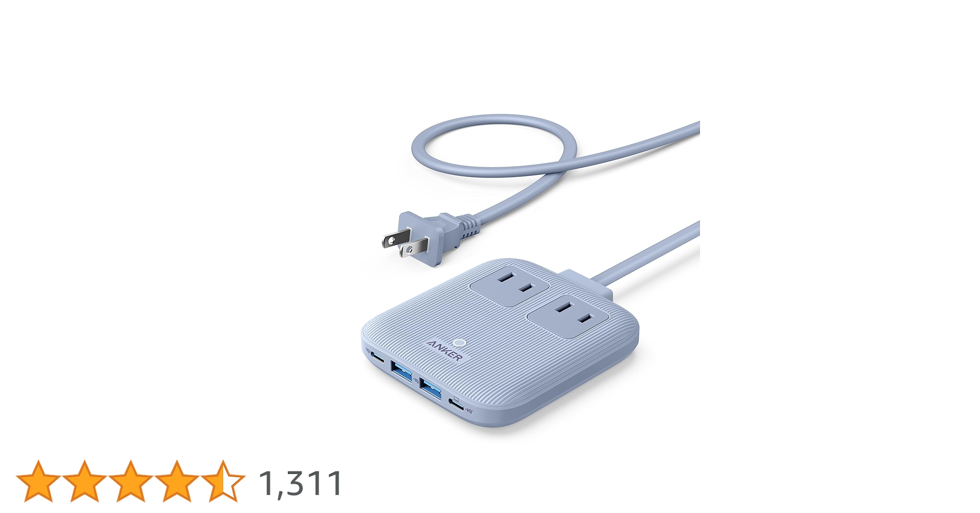 Anker Nano Charging Station (6-in-1, 67W) (USBタップ 電源タップ AC差込口 2口 USB-C 2ポート USB-A 2ポート 延長コード 1.5m) 【PSE技術基準適合】MacBook PD対応 Windows PC iPad iPhone Galaxy Android スマートフォン ノートPC 各種 その他機器対応 (グレイッシュブルー)