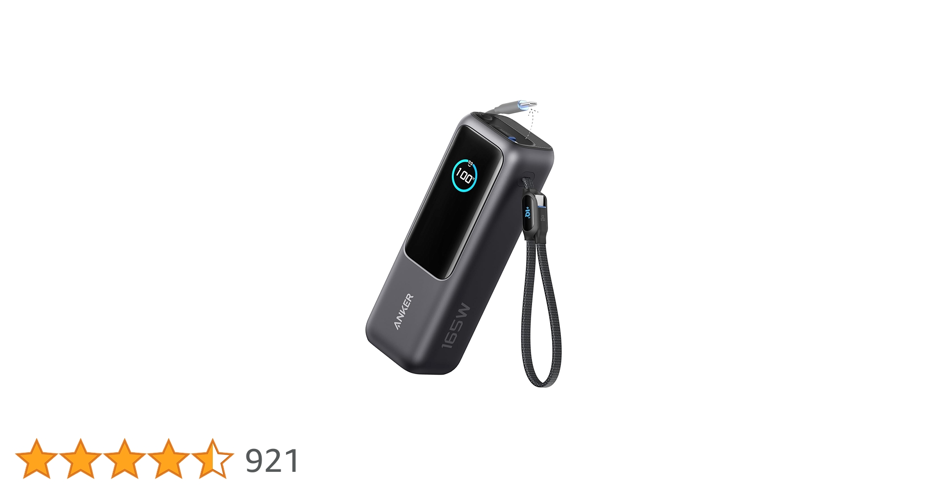Anker Power Bank (25000mAh, Built-In & 巻取り式USB-Cケーブル) 【PD対応/PSE技術基準適合/USB-C入力対応 / 165W出力 MacBook PD対応Windows PC iPad Pro iPhone 17 / 16 / 15 Galaxy Android スマートフォン ノートPC 各種 (ブラック)